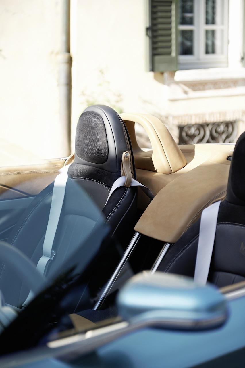 Inside, there's a single sheet of aluminum for the dashboard which has been left unfinished, while the center console gets pared-back circular instruments and touch-sensitive controls. A camera inside the car actually takes snapshots during journeys, probably more effective if you're sweeping down cliffside roads with the Mediterranean at your side, rather than bemoaning the absence of a roof while on the highway.