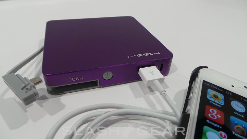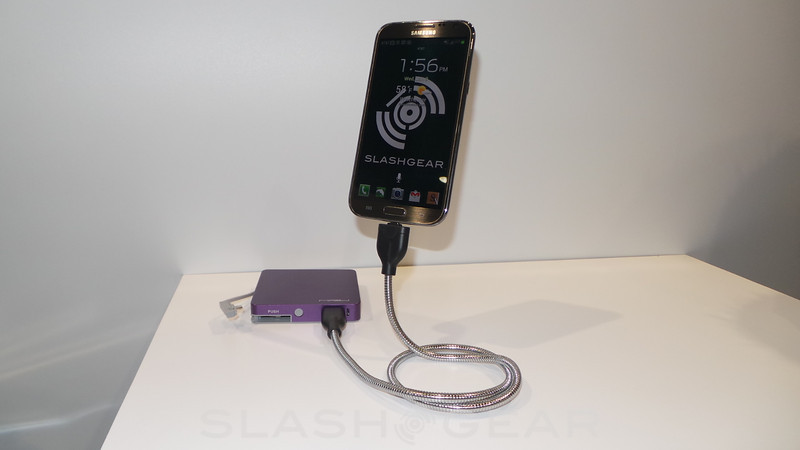 The version of this device that we got here is the Purple while the folks at MiPow also have Orange, Charcoal Gray, and Silver available now. You'll be able to charge this device up with your own microUSB cord from a wall socket the same as you would your own smartphone and you'll be able to charge your Android, iPhone, Windows Phone, or BlackBerry device up at will. In fact, if you've got any sort of device that charges with either a micro USB (included in the device's build), or full-size plug USB charging cable (like an iPhone 5 Lightning cable, for instance), you'll be able to charge here.