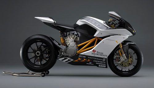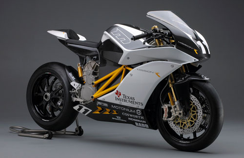 The Tesla Roadster was one of the first EVs that was performance oriented and now a very cool new motorcycle called the Mission Motors Mission R has debuted. The motorcycle is a racing machine that looks awesome. It has a liquid cooled AC induction motor that has 115ft. lbs of torque. The MissionEVT power train has 141hp and stores 14.4 kWh of power in a package that is smaller than a 600cc sport bike.