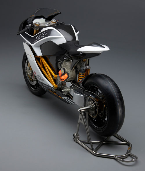 The bike uses a single gear ratio and can hit over 160mph in that single gear. That means that the rider will not have to shift while other racers go through multiple gears to hit the same speed. The bike will compete in the TTGXP, the world's first zero emissions, clean emissions grand prix held during the Isle of Man TT.