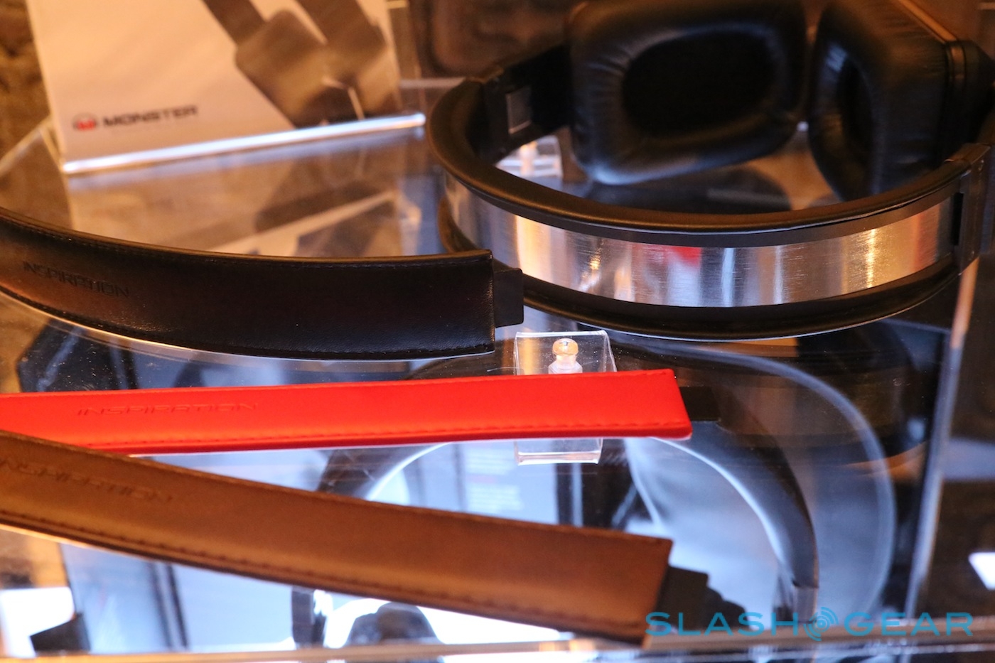Looking almost pedestrian in comparison are the Monster Inspiration headphones, squared off and folding conveniently, with a choice of regular or active-noise-cancellation models. They feature interchangeable headband inserts, which snap into place magnetically, allowing you to replace the discrete black leather default with studded, colored or fabric alternatives. Monster will be running a promotion in the UK for the Olympics, bundling two different bands as standard and offering buyers their choice of a country-themed insert too.