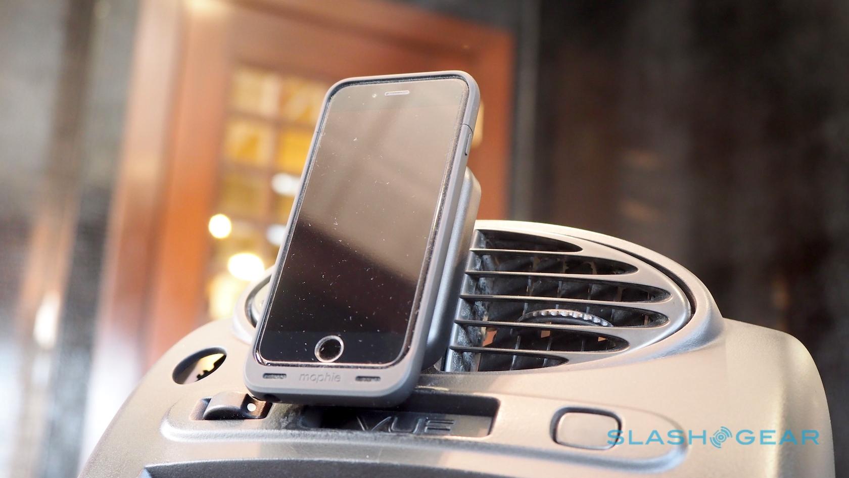 It's no toe-dip, either. Today, Mophie is launching new Juice Pack battery cases for the iPhone 6s and iPhone 6s Plus with support for both Qi and PMA wireless charging standards. There's a Qi wireless charging pad, too, as well as a vent mount charging pad for the car, and a desk stand charging pad.