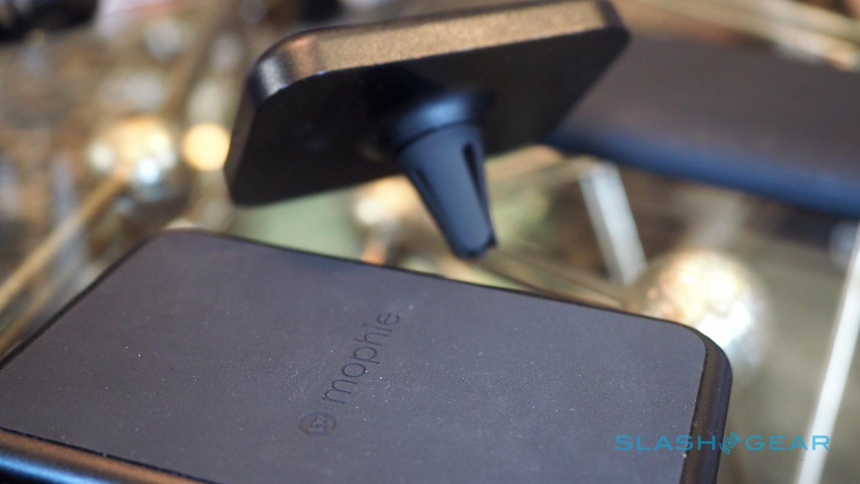Though the Juice Packs will be compatible with both common standards, Mophie has thrown in magnets into its implementation too. That helps orient the phone correctly on the pad, but also holds your phone on the vent mount or desk stand in either portrait or landscape orientation.