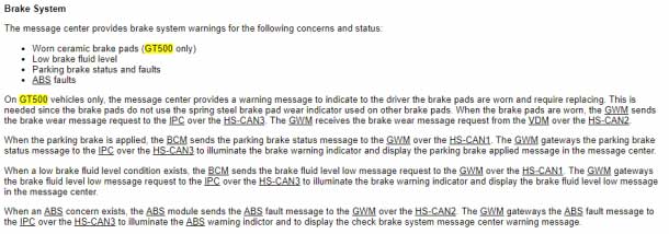 Another image talks about the brakes on the GT500 and specifically calls out ceramic brake pads. Some are interpreting this as a carbon ceramic brake system, which is not what a ceramic brake pad is. You can buy ceramic brake pads for just about any vehicle out there and they pair up with plain old brake rotors.