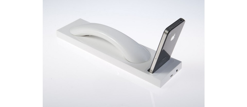Native Union won't give up on the idea of traditional handsets for modern smartphones, and their new Moshi Moshi MM03i even gives you somewhere to dock your iPhone. The new model has a MultiPoint Bluetooth-enabled handset and a special charge/sync cradle with a charging bay and an iPhone dock.