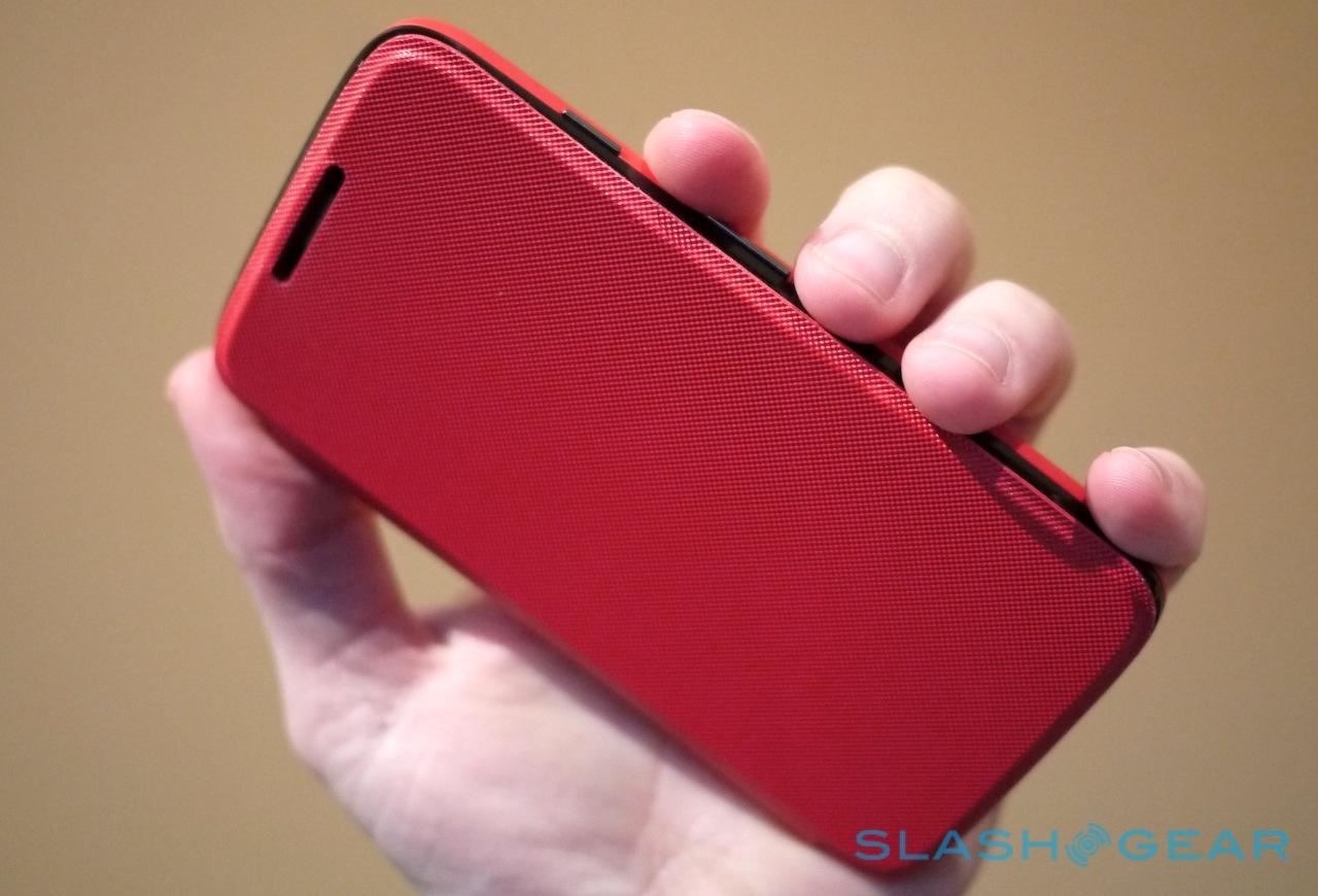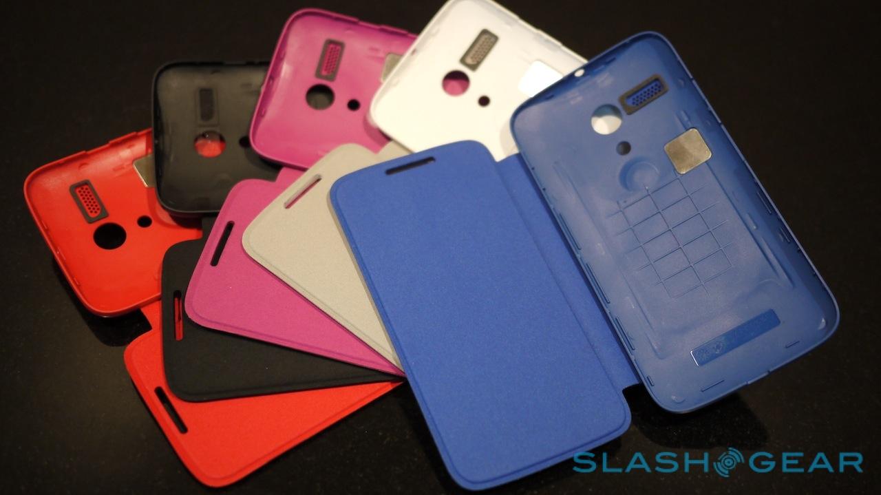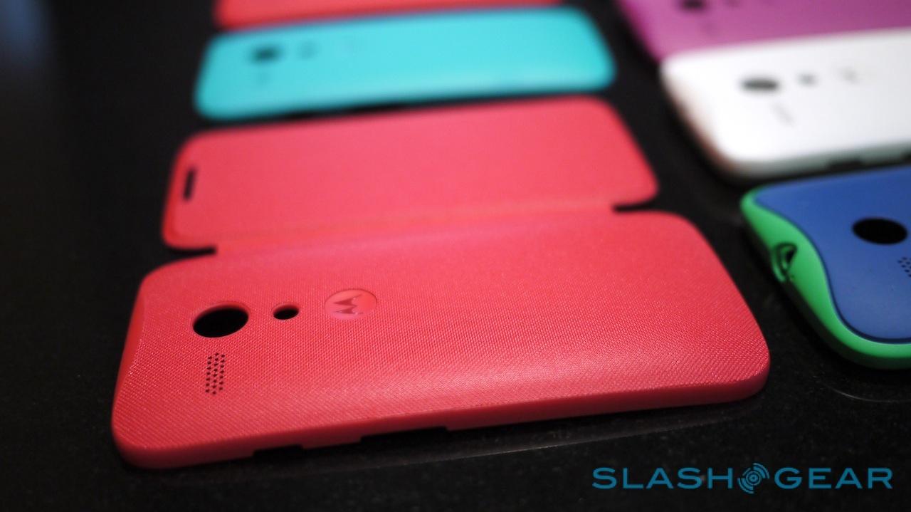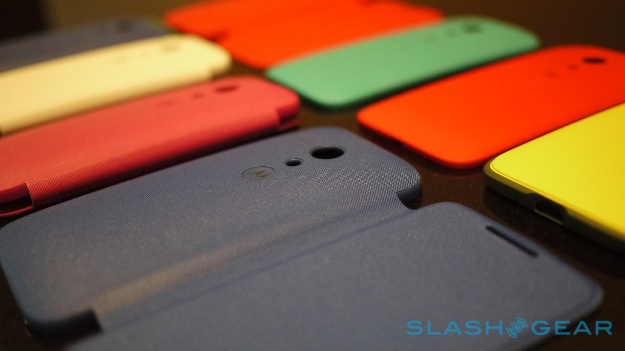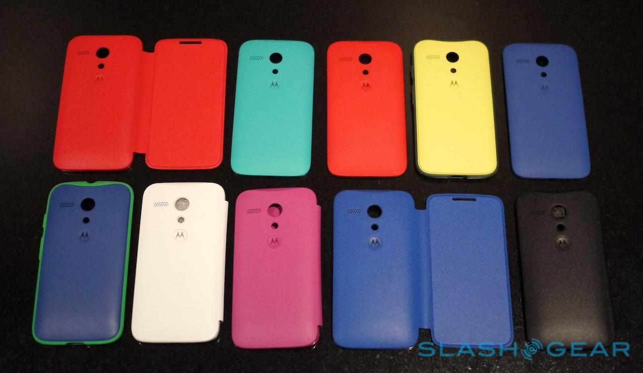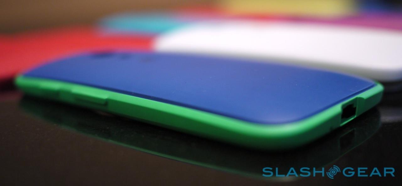 Motorola will offer multiple different colors and finishes depending on whether you want a sober phone for the office or a brightly-colored one you can easily find in a bag. Some will include integrated flip-covers to protect the front of the phone, too, as well as a mixture of glossy and matte finishes; Motorola told us they'll range from around $5 to $30 apiece, features depending. Unlike the standard black Moto X, the black Moto G doesn't have a pronounced texture to it, so it does pick up fingerprints quite readily.