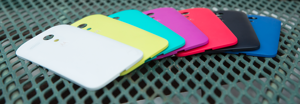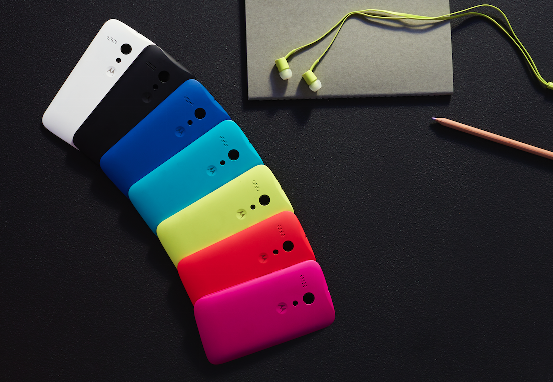 You'll find this machine appearing with a 5-megapixel camera at its back, a 1.3-megapixel camera at its front, and a base configuration with 8GB of internal storage. This device may look like its larger sibling, but the Moto G's back-facing cover centers on a slightly different bit of customizability. You'll not be working with Moto Maker on this one, but removable back covers in a variety of colors – yellow, purple, blue, green, red, and others in the near future.