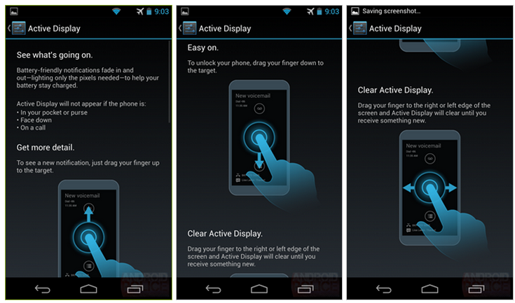 Rounding it all out is Active Display and Active Notifications, with the former working to conserve battery life by fading notifications in and out and selectively lighting the pixels needed to show the display. These won't appear, according to the screenshot, if the phone is in your pocket, if it is placed facedown, or if the user is currently on a call. Active Notifications, meanwhile, give users extensive control over the notification settings.