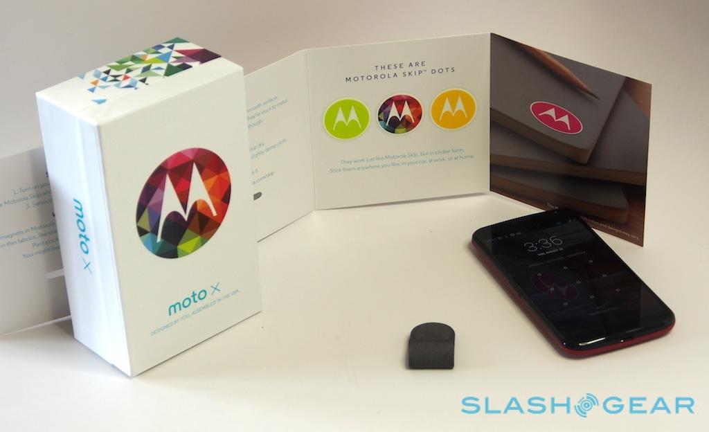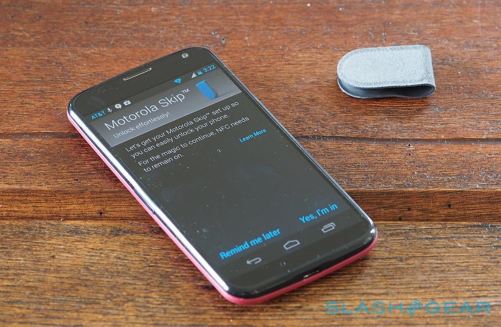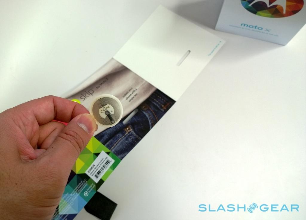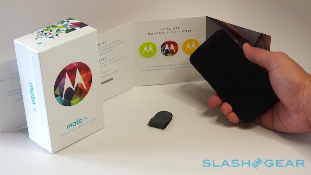In addition to Skip, though, you also get three of what Motorola calls Skip Dots: effectively NFC stickers. These, the company suggests, could be fixed to your desk, your nightstand, or your car dashboard, and so allow easy unlocking of the Moto X whenever it's nearby.