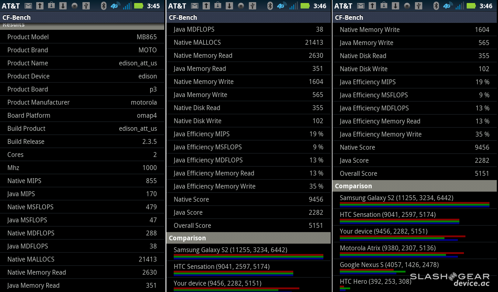 From there it's an extremely similar experience to what you've seen in the DROID 3 and the ELECTRIFY and the Photon, save for the software, of course. For those of you concerned with numbers, have a peek at a couple of benchmarks performed on the device here: