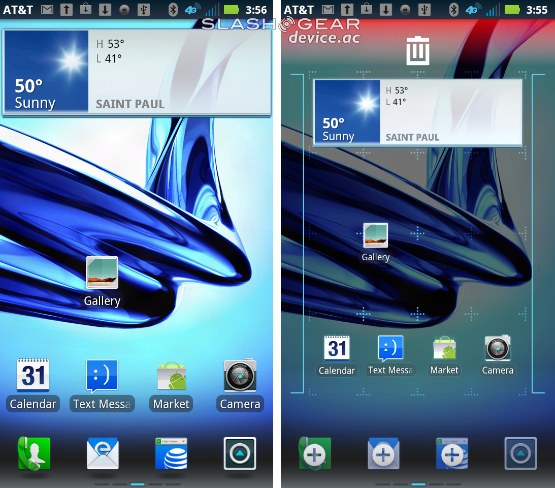 Inside the ATRIX 2 you've got the newest look at Android 2.3 Gingerbread that Motorola has whipped up for this and the rest of its recent smartphones. You've got plenty of customization including your regular everyday wallpapers and five full homescreens where both your application shortcuts and widgets, a few of which Motorola has offered up here as resizable, similar to what we've seen on Honeycomb in its newest updates and the future release of Android 4.0 Ice Cream Sandwich.