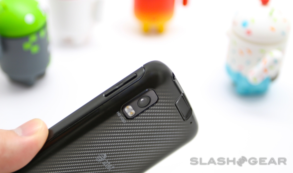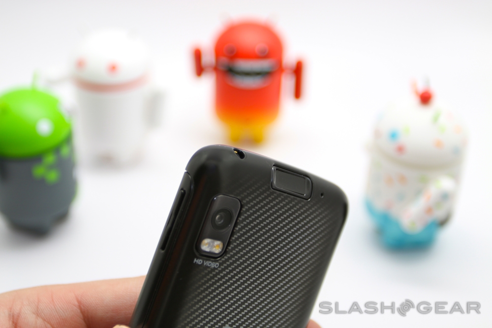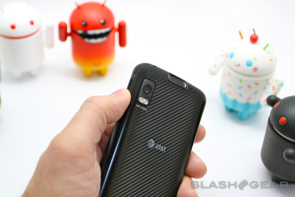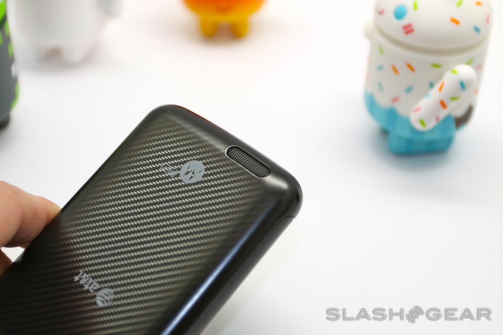 We rarely had any issues using this, unlocking the ATRIX 4G with a quick swipe; on a few occasions it took a second pass, but generally the fingerprint system is easier than the usual Android lock screen. Happily there's a passcode backup should you persistently encounter issues, or need to give someone else access. A speaker sits on the bottom edge, while the 5-megapixel camera with a dual-LED flash is on the distinctively patterned back.