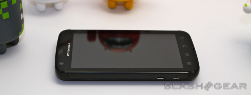 It's tough to pick holes in the ATRIX 4G's spec sheet; Motorola has put together a solid list of hardware that pushes several of the limits we've seen on recent Android devices. Build quality is solid plastic with a fair amount of heft in the hand: it's a dense handset, at 63.5 x 117.75 x 10.95 mm and 135g, and feels reassuringly free of creaks and flex. There's something about the fascia that reminds us of the HTC Touch HD, discrete and sober.