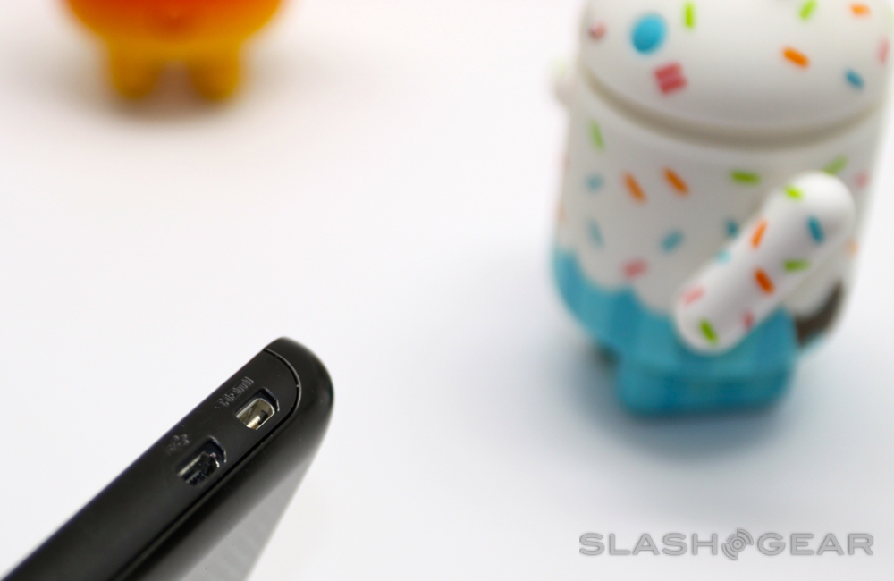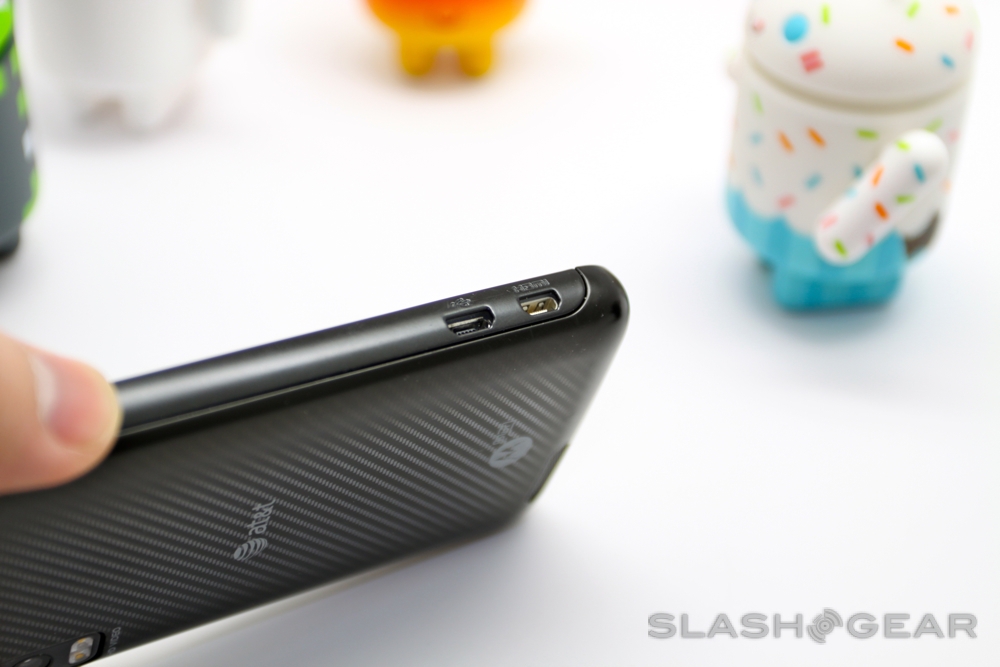 On the left edge there's the microUSB and HDMI connectors, while the volume controls are – somewhat unusually, but still perfectly usable – on the right.