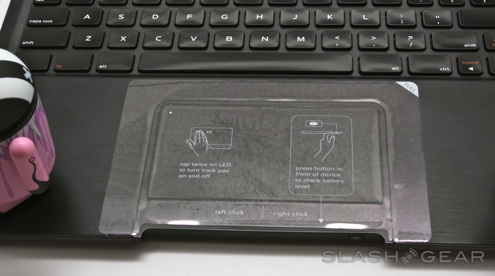 The Laptop Dock hardware is certainly solid, made of brushed black metal and plastic, and with strongly-sprung keys. Despite the broad width they keys themselves are a little smaller than what we're used to from, say, the MacBook Air, and general feel is slightly less impressive than a regular notebook. The trackpad is large – though the button bar is far too stiff for our liking – but the absence of multitouch support for two-finger scrolling and other gestures is frustrating.