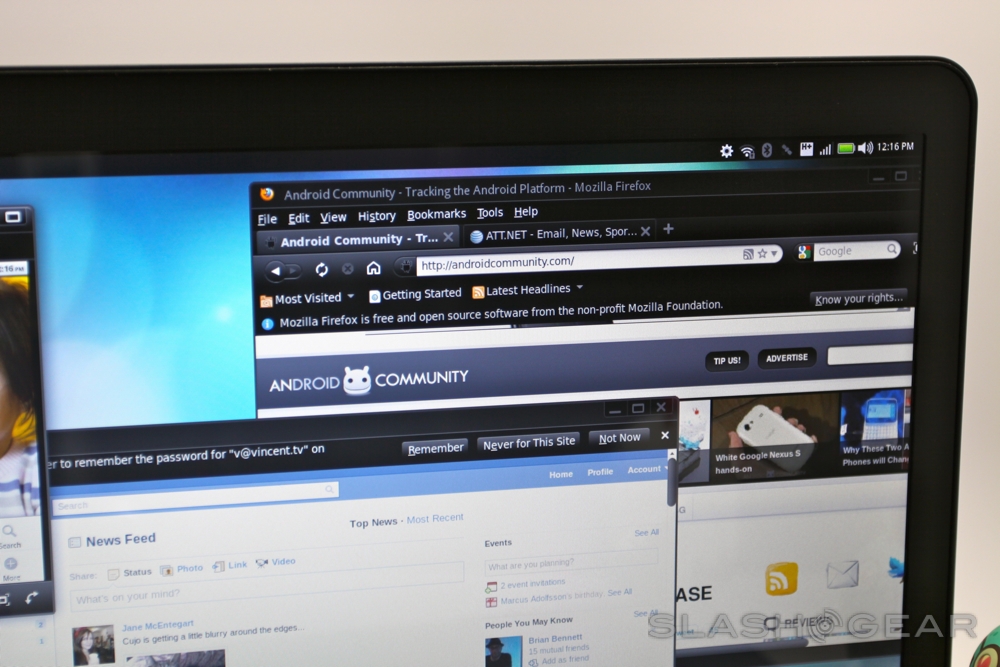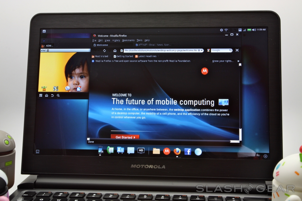 As for the display, that's a 1366 x 768 panel and is bright and reasonably clear. The Webtop system is a custom Linux build, with an OS X style dock of apps – including a full version of Firefox – along the bottom of the screen and a windowed version of the ATRIX 4G's display floating on the left.