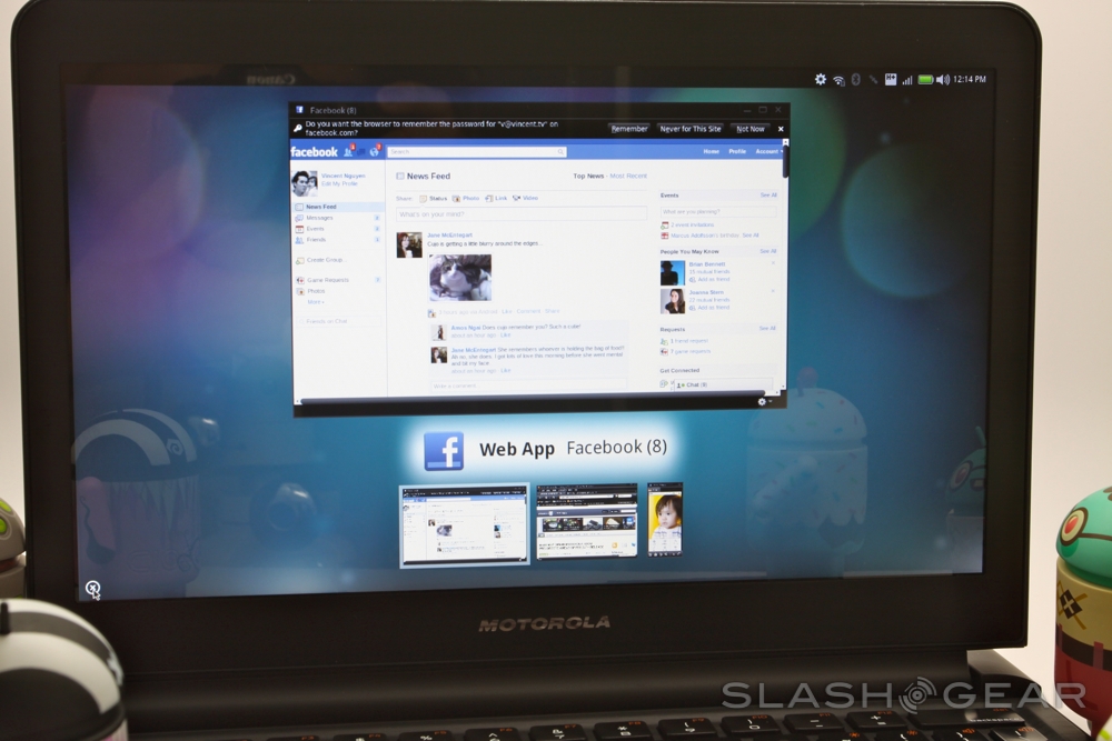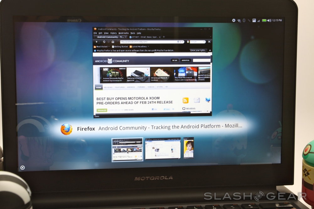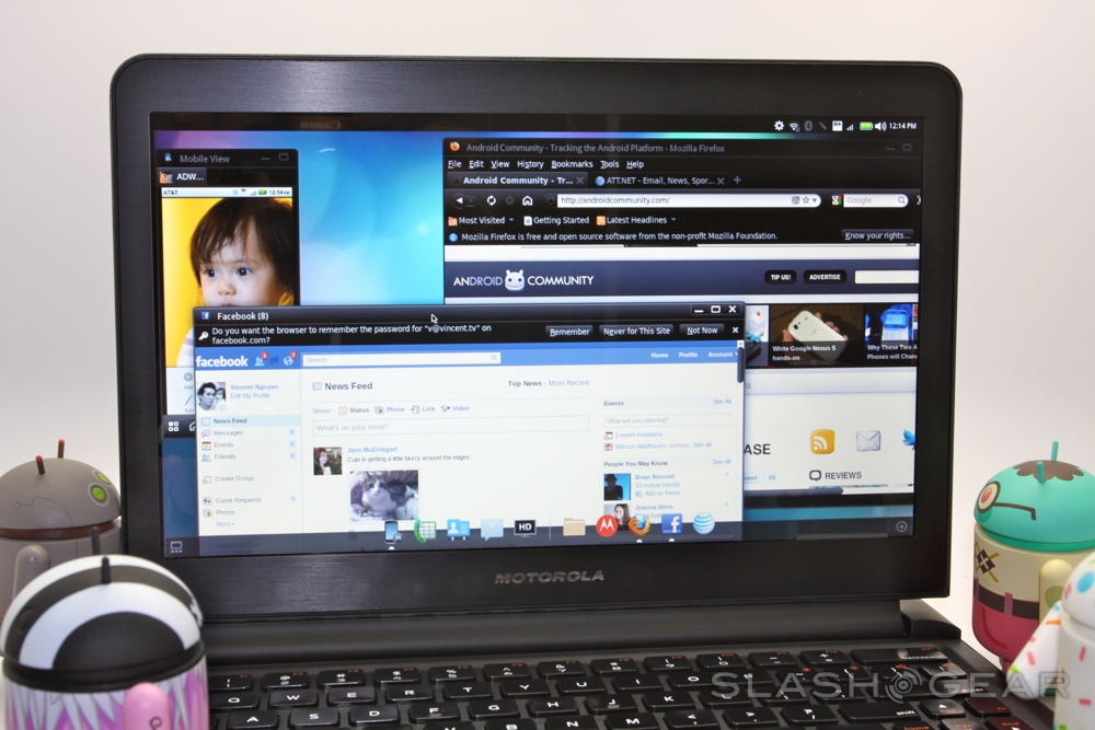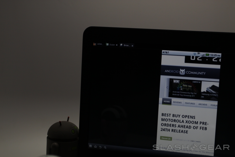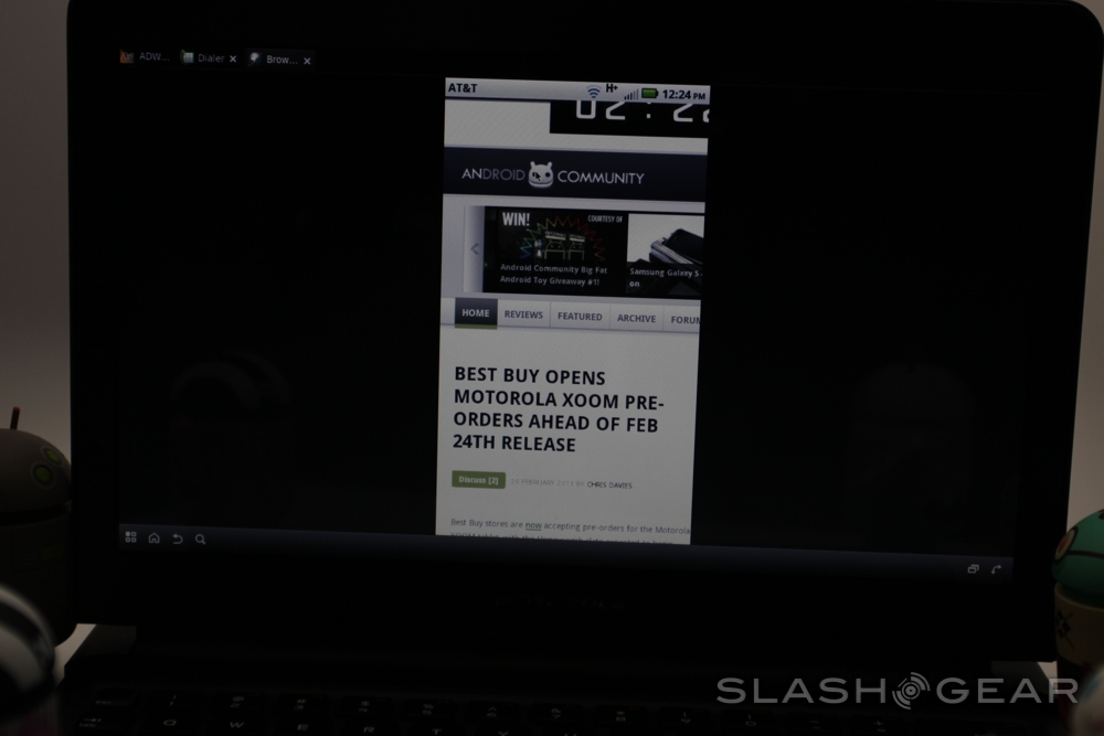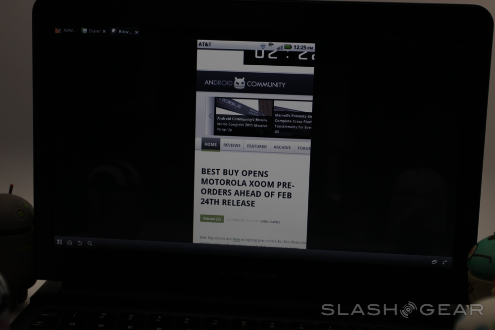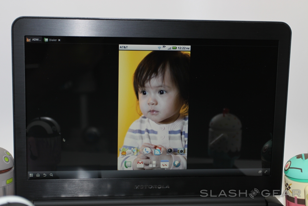 You can boot into the Entertainment Center – more of which in the HD Dock section – or, more likely, the browser (there are shortcuts for AT&T, Facebook and Motorola, but they simply open the relevant pages in Firefox), and both the phone view and browser view can be maximized to full-screen (though the phone image is merely magnified, not upscaled, so gets relatively pixelated in the process).