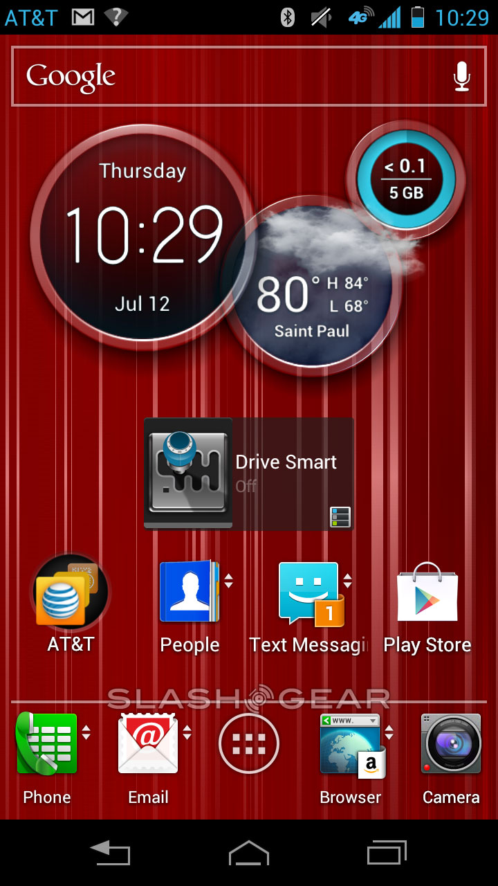 The home screen you'll find using the original ICS app drawer icon, otherwise Motorola's own additions making this device seem like a whole new experience. This includes a new circle widget that includes not just weather and time, but the amount of data you've used inside the month as well – quite helpful for those who don't want overage charges, which can be hefty.