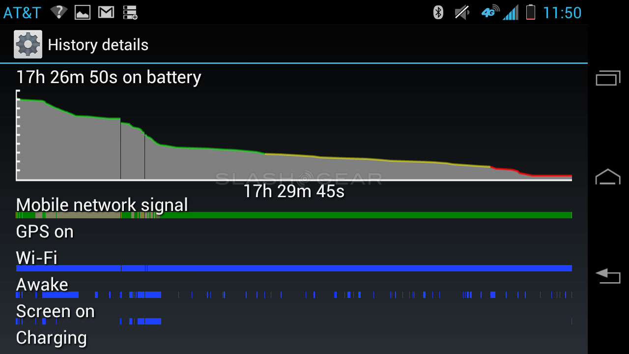 As you can see in the shot below, we've had a pretty darn good experience with this device even when we're running it through benchmarks, streaming video, and big name games. A normal day will not have you needing to recharge until you're ready to head off to bed for the night – an overnight charge will have you working well throughout your daytime hours, no problem.