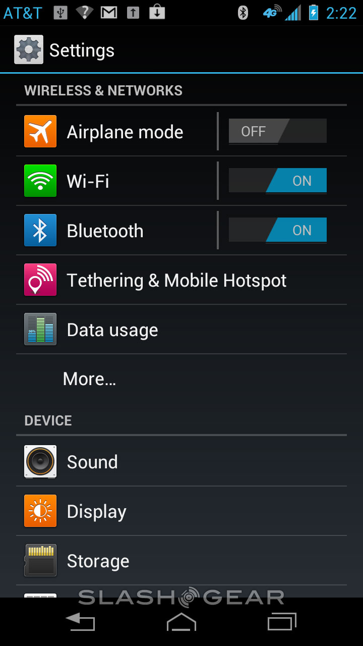 Motorola has pushed a whole new version of their own user interface for Android 4.0 Ice Cream Sandwich on this device, complete with a rainbow of colors in not only the icons, but in the settings as well. You'll find your journey through your settings, normally a place where only those well-versed in Android dare to tread, a friendly experience that anyone could feel at home with.