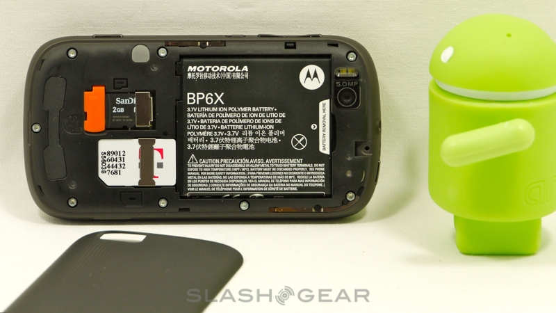 Underneath the display are four touch-sensitive buttons, while the power key is up top – next to the 3.5mm headphone socket – and the volume rocker on the right side. Happily the physical mute switch from the CLIQ has also been carried over, and there's a two-stage camera shortcut. On the back is a 5-megapixel camera with auto-focus and an LED flash, while underneath is the SIM slot, microSD slot and standard 1,420 mAh battery.