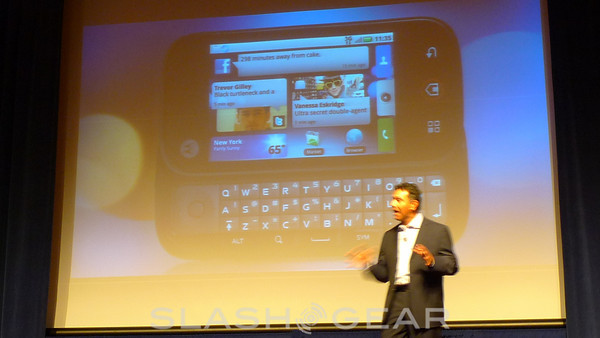 As promised, Motorola have announced their first Android device, the MOTOCLIQ, at the Mobilize conference in San Francisco today. The Motorola CLIQ will be an exclusive for T-Mobile in the USA and go on sale before the holidays; it has a 3.1-inch HVGA 320 x 480 touchscreen, 3G, WiFi and a flip-out QWERTY keyboard. Meanwhile the new MOTOBLUR system syncs contacts, messages, feeds, photos and more from Facebook, Twitter, Yahoo!, Gmail, corporate email Last.fm and more, putting all of the new information on the smartphone's homescreen.Click over for full hands-on video!