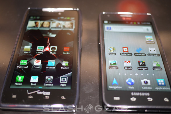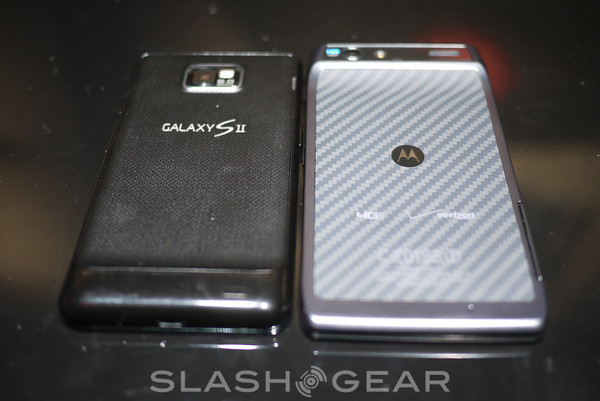 Hands-on, it's a surprisingly light device considering what's packed inside. Slightly heavier than the Samsung Galaxy S II, but considerably sturdier thanks to the less creaky, plasticky casing. Next to the Motorola ELECTRIFY it looks ridiculously slim, but still manages to fit in micro HDMI and microUSB ports. We're not sure if it's Samsung or someone else providing Motorola with its Super AMOLED display, but whatever the source it's a bright, clear and beautifully color-saturated panel.