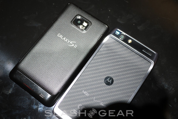 Have a look at the hands-on videos here in this post and have a good glance at the photo gallery below for a bunch of close-ups. Also see how the Samsung Galaxy S II (the AT&T version) stacks up against the RAZR here with full brightness on both devices: