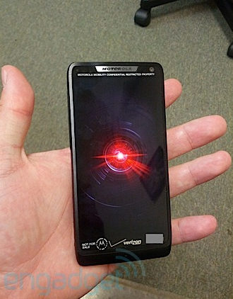 Verizon's next DROID appears to have leaked once more this morning in a hands-on treatment with assurances that the Snapdragon S4 processor inside it is "fantastic." Over at Engadget this souce has noted that the lithium polymer battery inside was able to withstand a full day's heavy usage even with 4G LTE active, and the casing is ready for battle action as well. As you may well know, Motorola's latest line of smartphones basically all have protection against drops and water splashes, so we're not surprised that this one is as well.