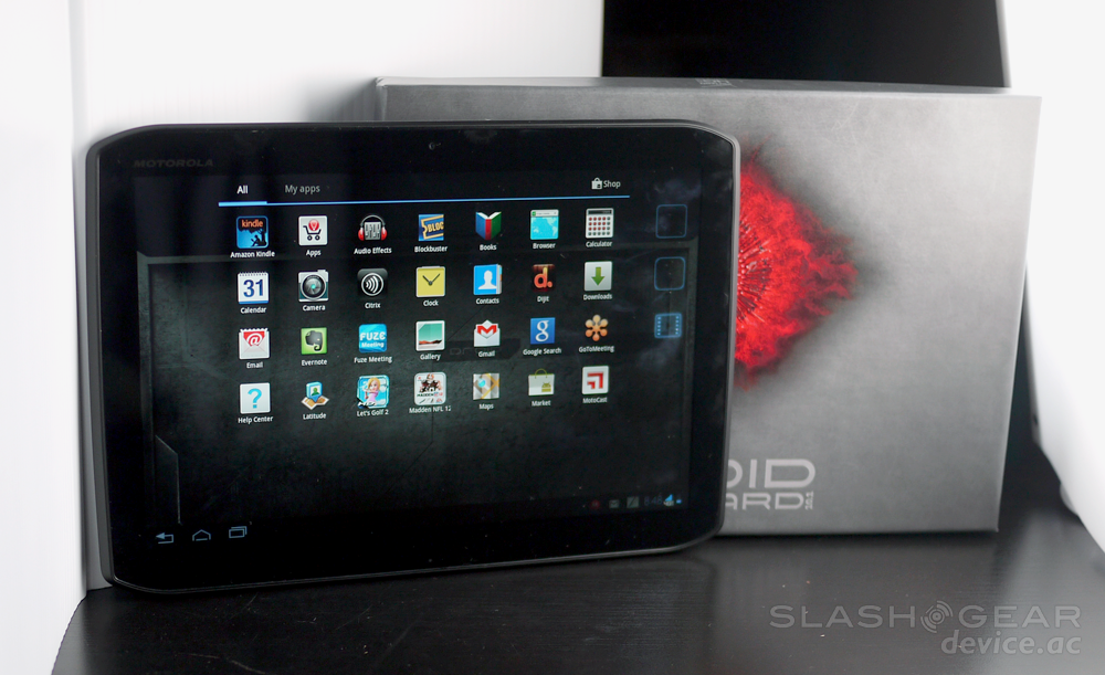 You'll be running Android 3.2 Honeycomb out of the box with some very BASIC additions by Motorola to make it their own. You'll have the same Honeycomb Vanilla gallery, same camera, same interface on the whole, it's just the icons a handful of applications that are coming from the manufacturer and Verizon. Most prominent is the MotoCast app sitting right there on your main home screen just begging you to get into Motorola's extended world of devices via their rather nicely crafted software ecosystem – check out the DROID RAZR and the Motorola MOTOACTV reviews we've got to get a better idea of what it means to be part of this bigger family Motorola is promoting here.