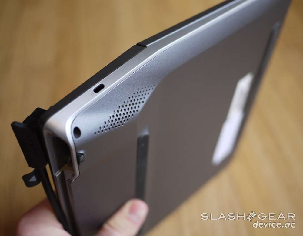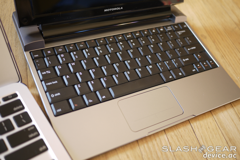 The speakers on this device, though they sit below the back and outward in a unique fashion, do not add up to full-fledged laptop speakers. The MacBook Air (which you see toting a SPECK cover in the photo above,) has speakers that blow the Lapdock 100 away. Similarly, though Motorola isn't quite being specific with consumers about the display, I can say very unscientifically that it's OK but by no means great. Viewing angles are at 90 degrees before getting a bit washed out, and again this is simply no match for any of the current MacBook range.