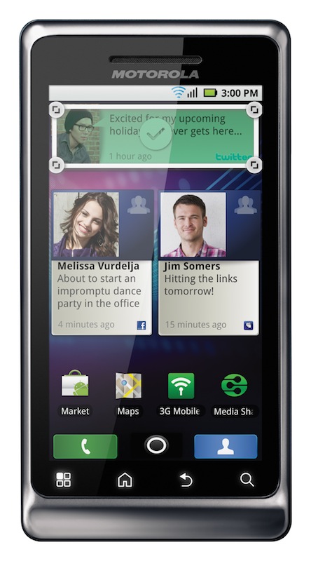 MILESTONE 2 also features the latest version of Motorola's unique solution, MOTOBLUR, which makes it even easier to manage all of your emails, messages and social updates in one easy place with the additions of filtering, resizable widgets, added corporate security and a versatile battery manager.