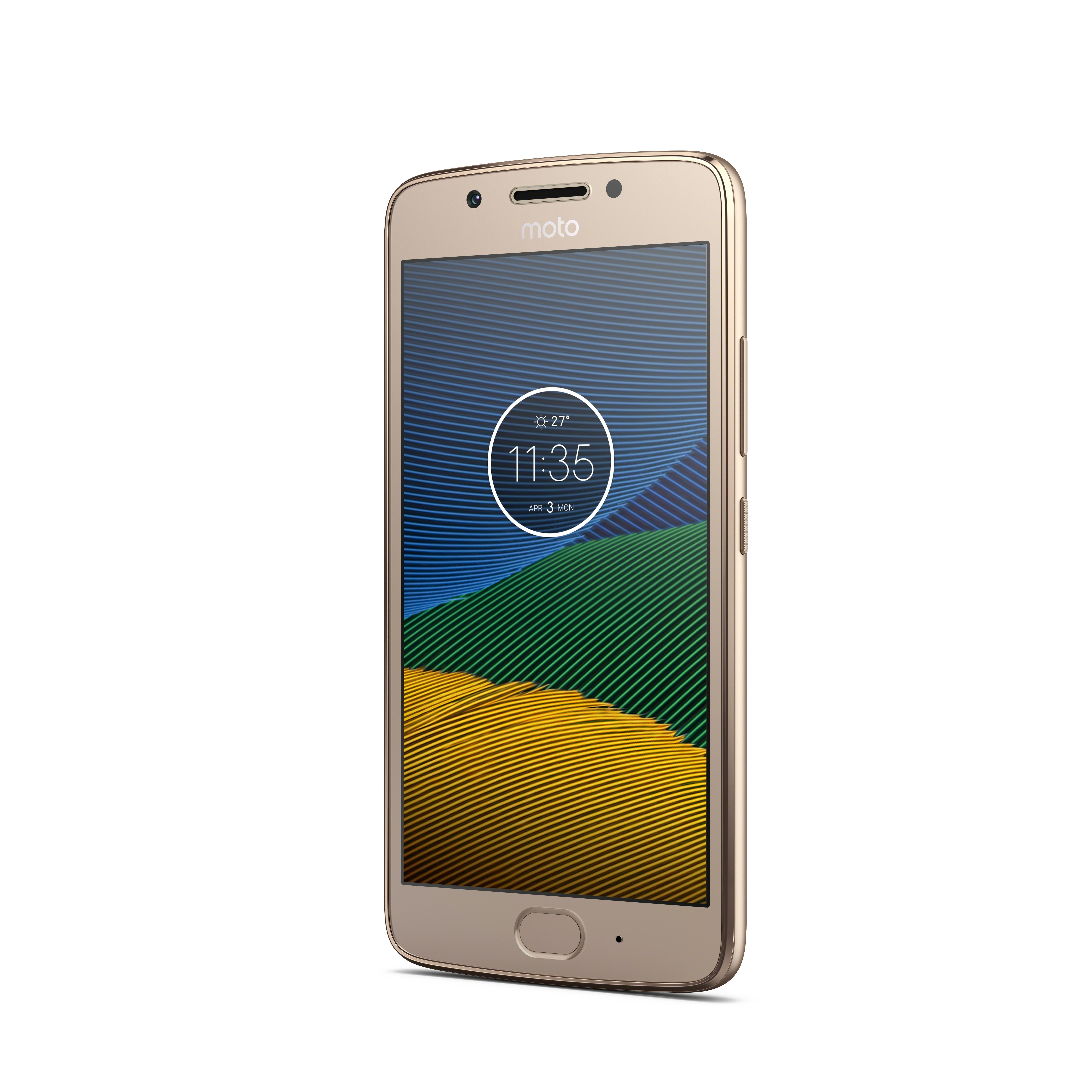 The 144.3 x 73 x 9.5 mm, 144.5 gram body has a water-repellant nano coating to avoid splashes and spills. There's a fingerprint sensor too, and Motorola will offer the Moto G5 in lunar gray, fine gold, and – in certain regions at least – a sapphire blue finish.