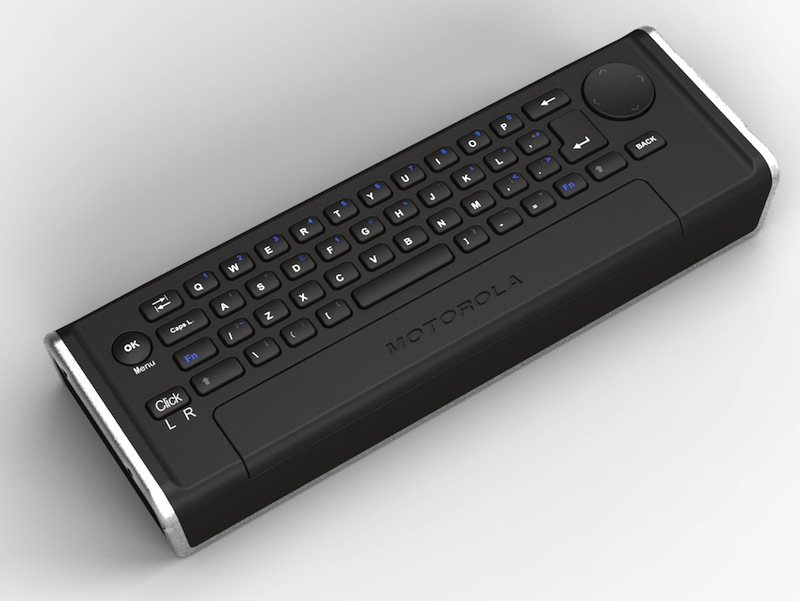 Motorola's remote control team has been busy, looking at not only how they can speed up text entry when using the company's IPTV set-top boxes but how we can avoid switching AA batteries every couple of months. The former problem is easier, of course – their NYXboard slaps a QWERTY keyboard on the reverse of a regular remote – while the latter rather excitingly uses super capacitors and a fast-charging stand.