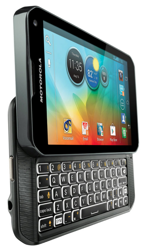 This smartphone is UL Environment (ULE) Platinum Certified, aka "the highest level of environmental performance recognized by sustainable requirements established by UL Environment." You'll be able to work with a lovely five-row slide-out QWERTY keyboard and you've got Motorola's user interface onboard over Android 4.0.4 Ice Cream Sandwich right out of the box. Catch it in stores soon!