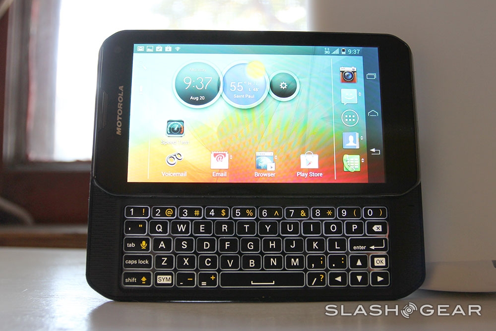 Motorola made a bit of a strange choice with the plastics on this device. The back has a texture that should be made to grip, but because it's so nearly-flat and linear it slips. That said, the bulk of the device does make grip more than possible, this keyboard-toting unit made to use by the working person.