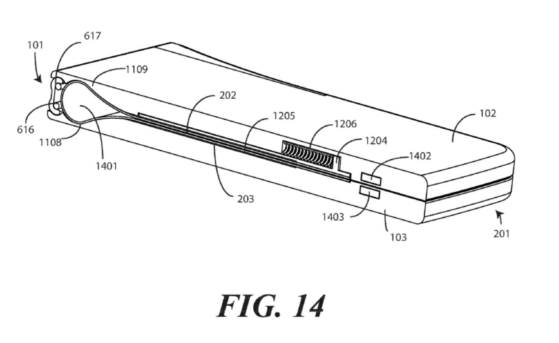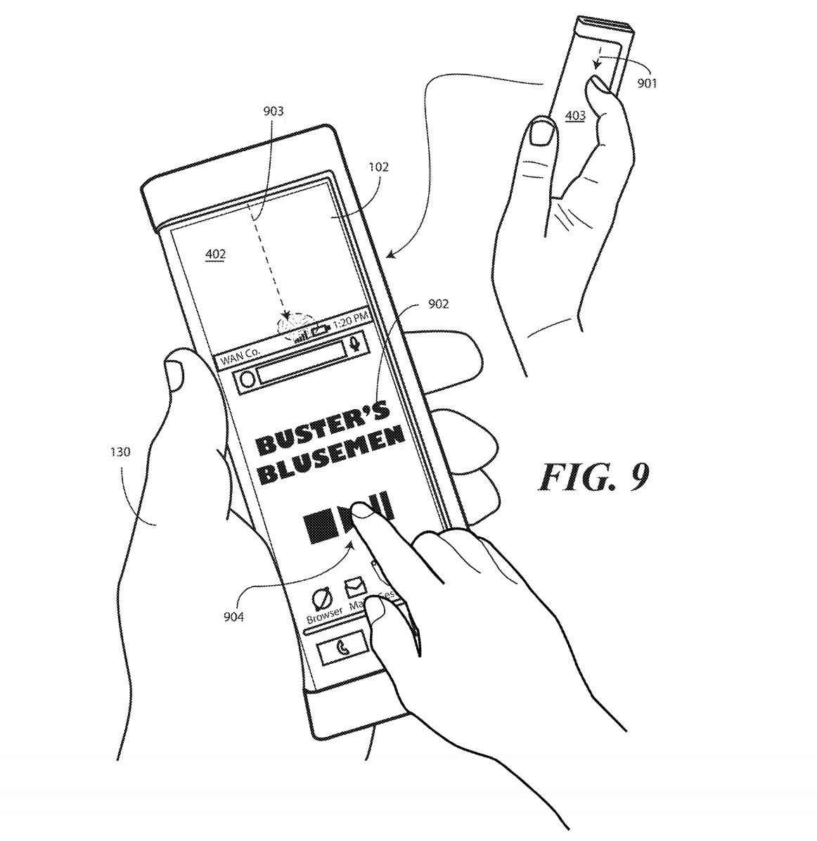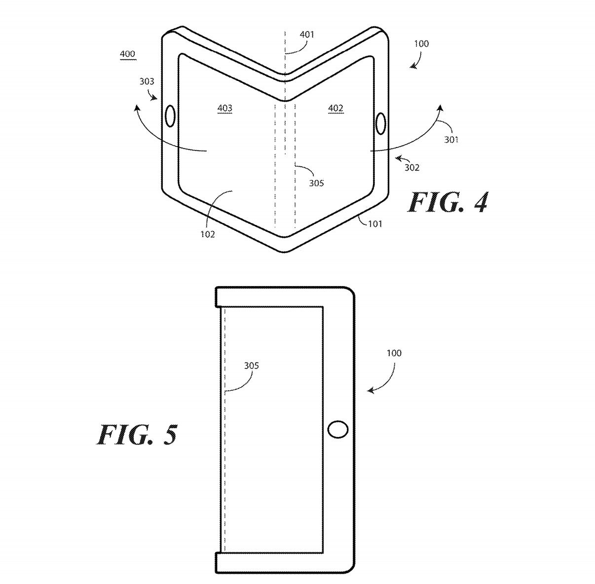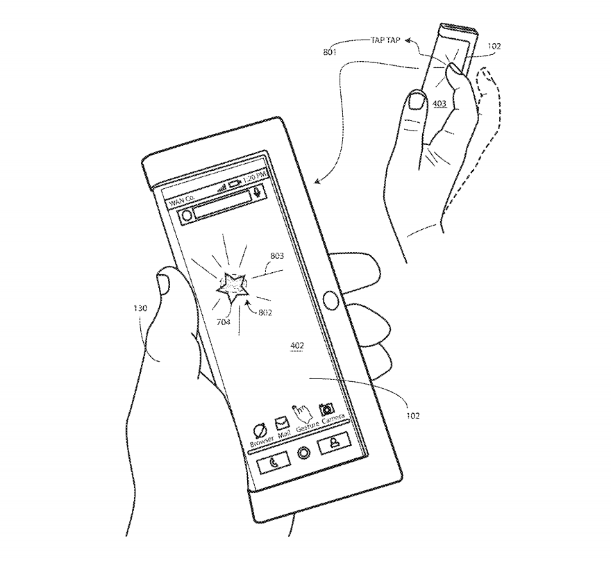 This patent centers on one design, but leads in to a very similar set of patents, all with foldable display components. "Other displays can be configured to accommodate both bends and folds. In one or more embodiments the display 105 may be formed from multiple layers of flexible material such as flexible sheets of polymer or other materials."