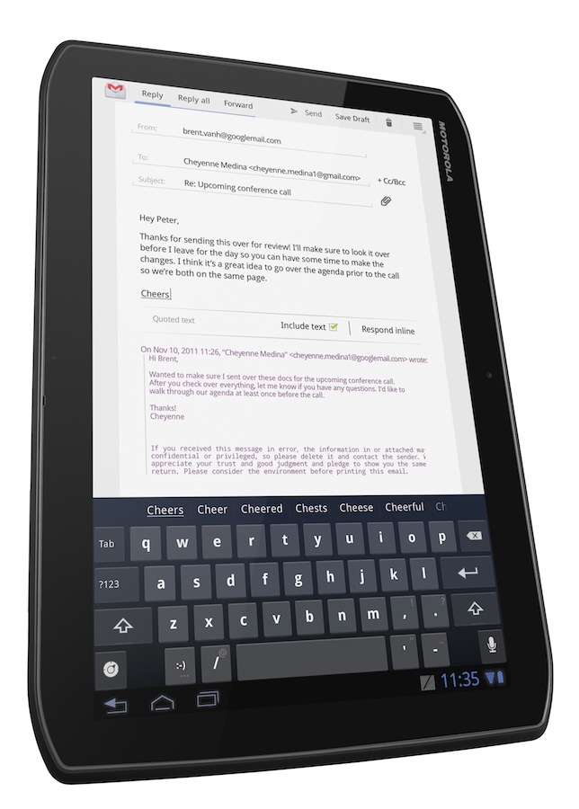 There'll be a Work and Play kit, with a Bluetooth keyboard and mouse along with a desk dock, as well as a Motorola Stylus. Motorola throw plenty of business-centric apps onto the larger of the two tablets too.