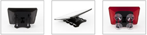 The big feature of the mounting system is the universal design. You can use the included mounts to connect the iPad to a mirror or other flat vertical surface, a car visor, prop it on a table, and more. To mount to a vertical surface the mount includes four suction cups. I would be worried about trusting four suction cups to keep my iPad mounted on a flat vertical surface.