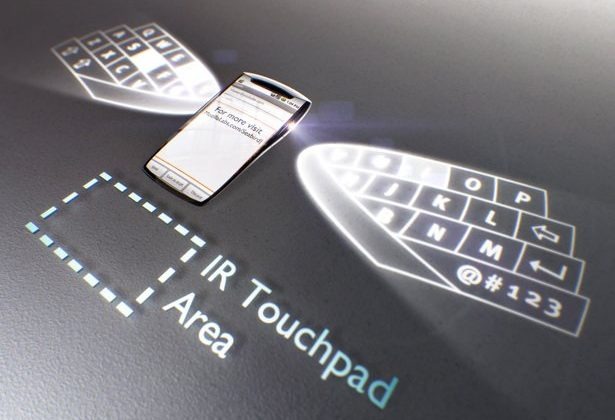 For instance, if you drop the Seabird flat on a table, it creates "wings" consisting of two split-QWERTY panes and a trackpad area underneath. When on its pedestal dock, meanwhile, the projected keyboard is all one block. A sinuously curved chassis keeps the projector lenses partially elevated, together with making the smartphone nestle into the hand.