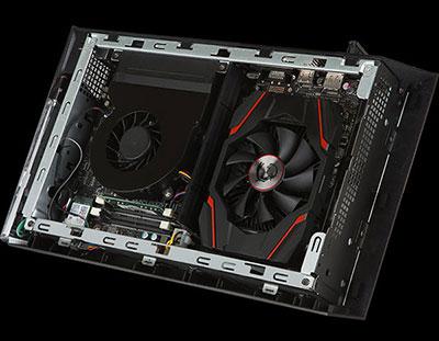 MSI says that the GTX 1060 graphics inside are capable of playing the blockbuster titles that are on the market right now and games that are coming to market over the next year. The cooling system is able to perform while remaining quiet because key components are separated into different chambers inside the machine. Noise from the cooling system can be an issue for some very small gaming systems, such as the Alienware Alpha.