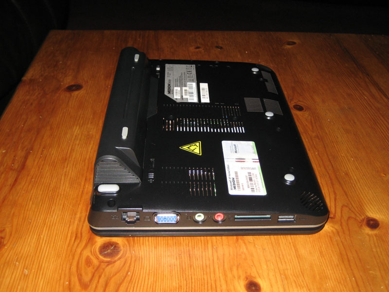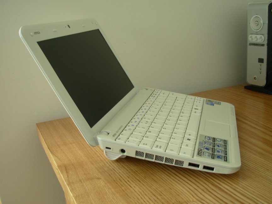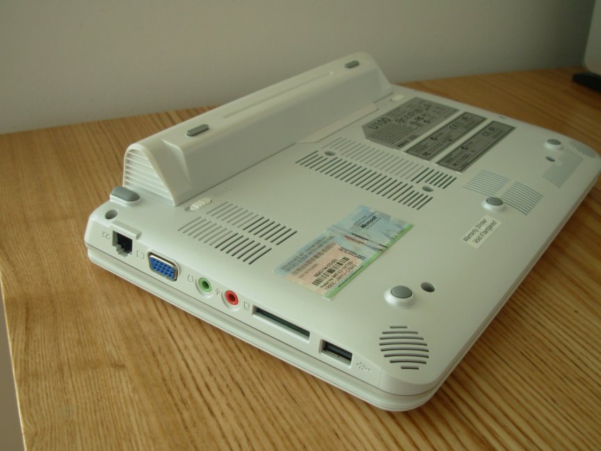 Necessity is the mother of invention, they say, hence the jacked-up MSI Wind you see below. The culprit is a whopping 9-cell battery pack for the netbook, available from third-party sellers on eBay rather than an official MSI accessory, which takes its merely moderate runtime from the standard batteries and boosts it to 7.5 to 10hrs.