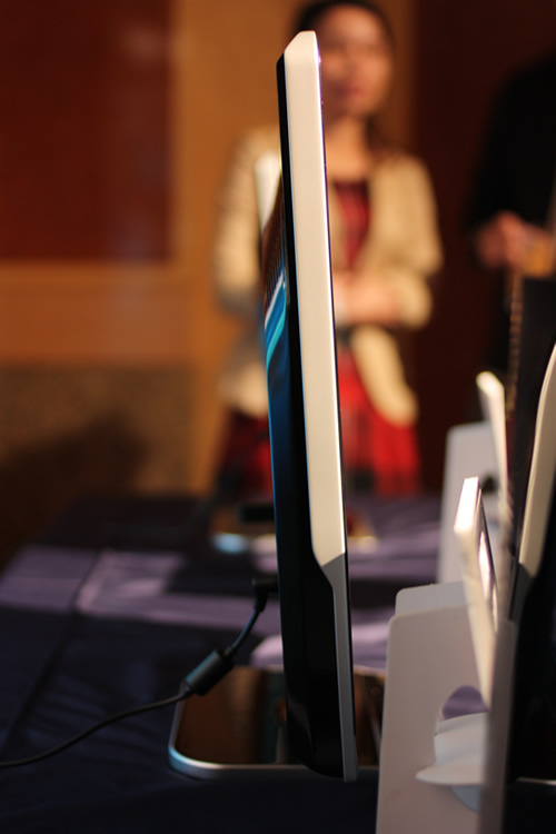 The M16 and M19 both run at 1366 x 768 resolution; where the former has its brains in a hinged box underneath the screen that can pivot as a stand or to hang underneath for wall-mounting, the latter integrates all the components and ports into the body of the screen itself. A TV tuner is an option on all three models, and the M22 can be specified with a remote control.