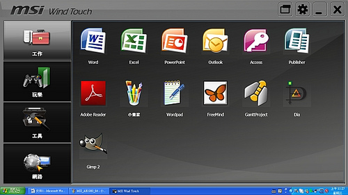MSI's Wind Touch GUI - which sits on top of Windows XP and acts as a finger-friendly launcher – will apparently be user-customizable, which puts it one step ahead of ASUS' Eee Top. MSI preload CyberLink PowerDVD, too, to take advantage of the integrated optical drive, a welcome sight on a machine that seems ideal for kitchen entertainment.