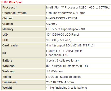 Retaining the handy and practical design concept of Wind U100, MSI U100 PLUS is powered by the latest Intel® Atom™ N280 processor, which not only enables better computing efficiency but also achieves lower power consumption. What's more, the lightweight of Wind U100 PLUS (only 1kg), 10" LED backlight display, 802.11n WLAN and 1.3M built-in webcam make it the perfect companion of your work, travel and on the go. Why not get a U100 PLUS to capture every single moment of your life?