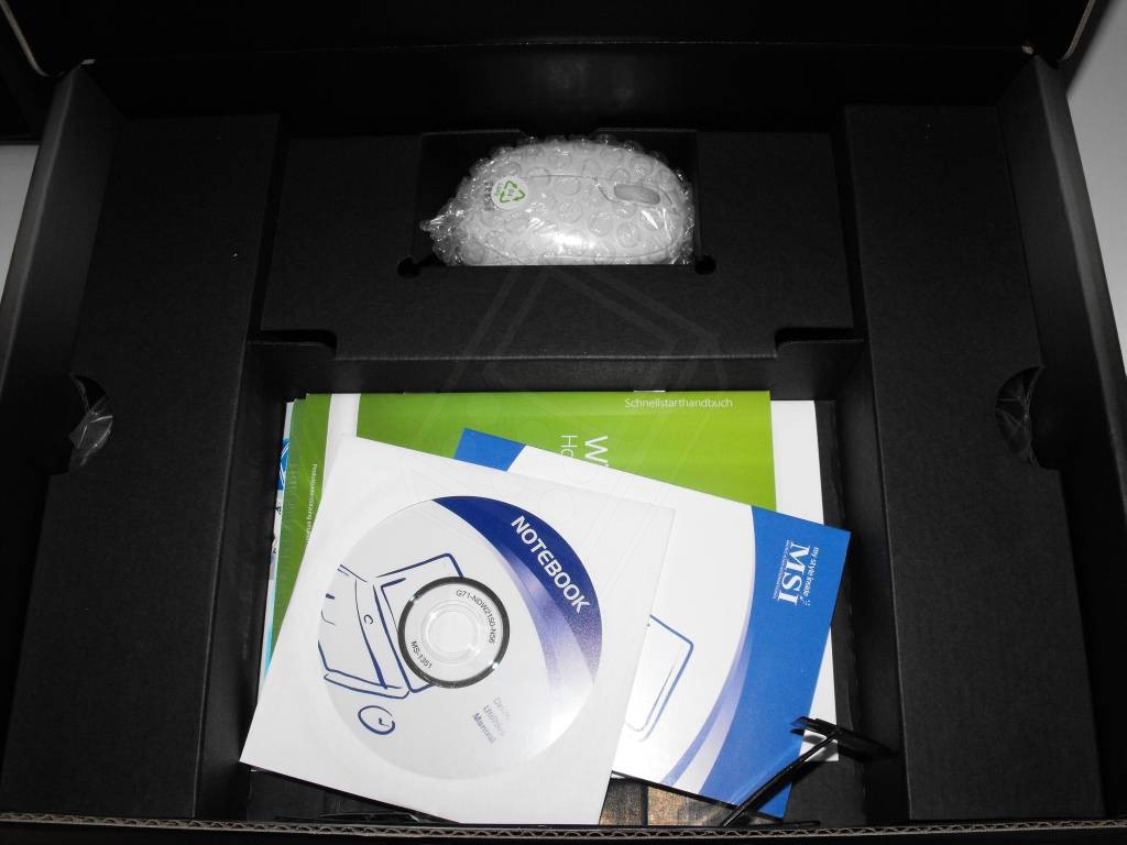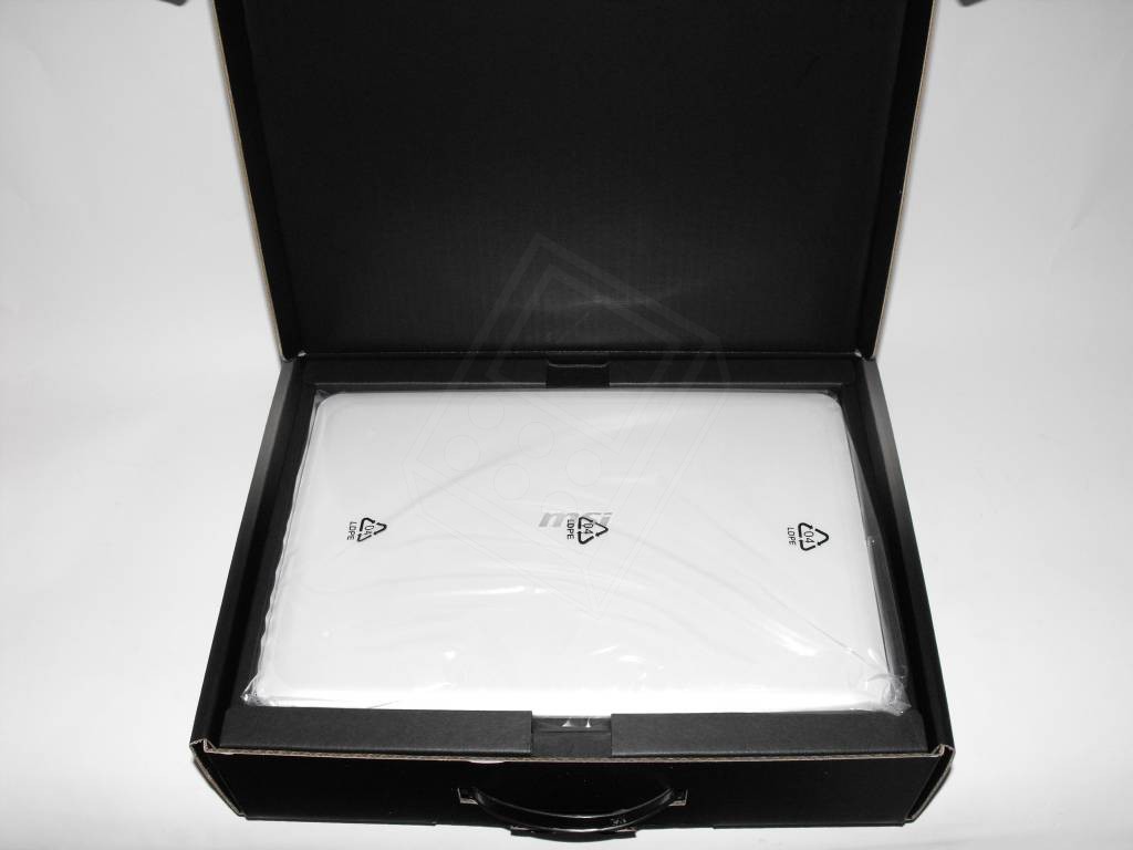 MSI give you more inside the box, too, with a carry case and PSU plus a mouse with a retractable USB cable. Pouch and mouse both match the X-Slim's gloss white casing; we're assuming the black version will have similarly matched accessories.