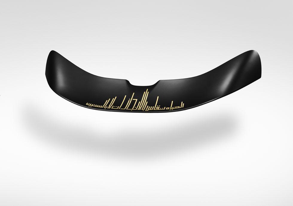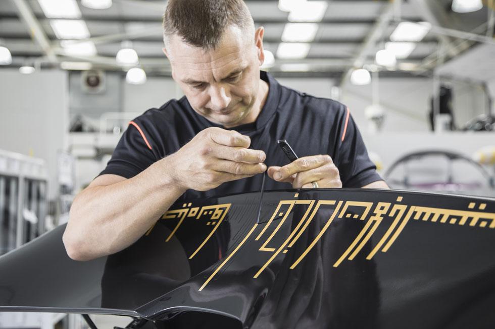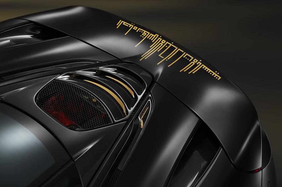 That famous quote is painted on the upper surface of the rear wing in gold Arabic lettering that is stylized to look like the skyline of Dubai. The MSO personalization to this car took 120 hours with the rear wing alone taking 30 hours to complete.