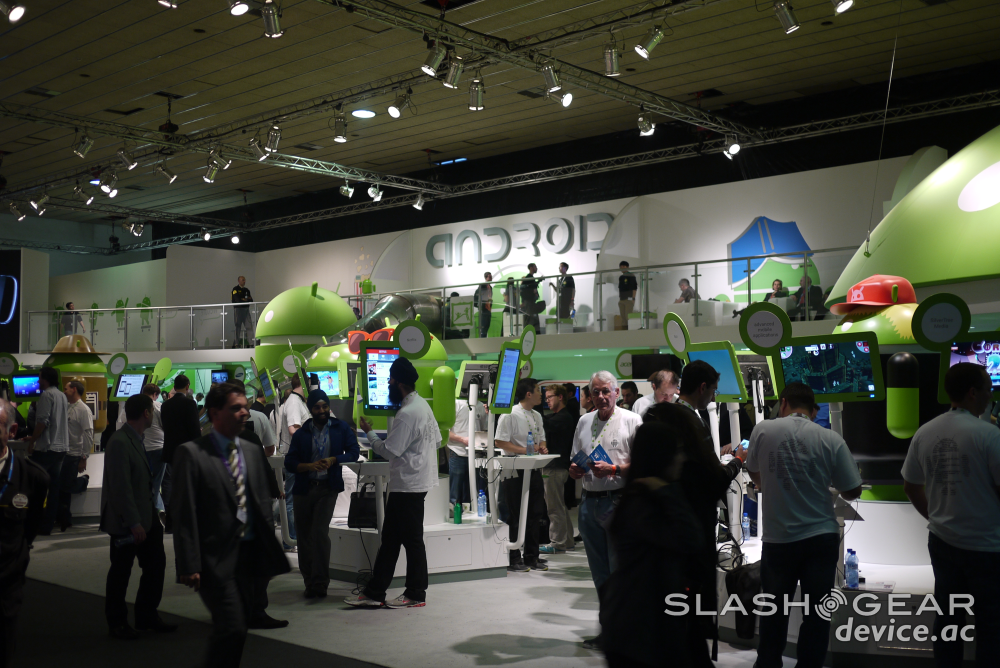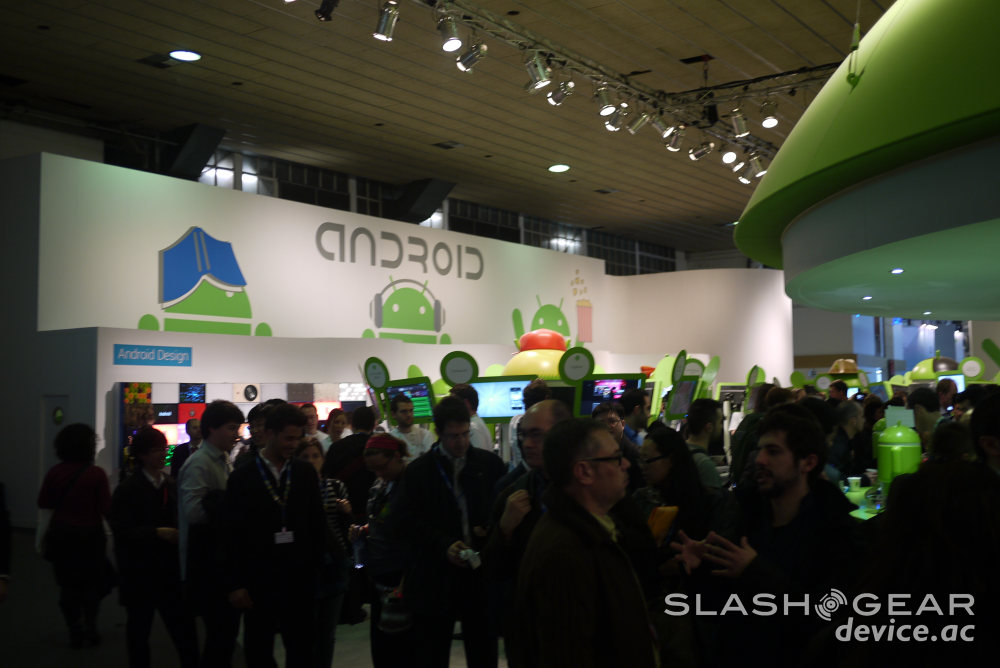 Taking our expectations from last year and once again knocking them out of the park with a gigantic Android-controlled cannon, Google has presented another "Google Pod" worthy of remembrance this year at Mobile World Congress 2012. They had everything from developers of games to free Android-version-flavored smoothies and back to the cult-classic Android pins promotion. There was even a robot making gemmed-up Galaxy Nexus battery covers for the most hardcore of shiny Android accessory lovers! Have a walk down Google way in our video tour for MWC 2012!