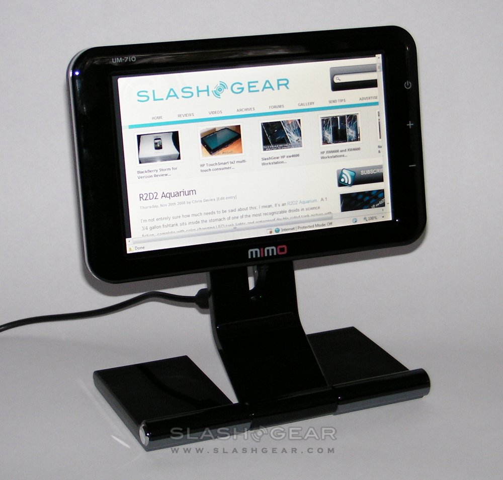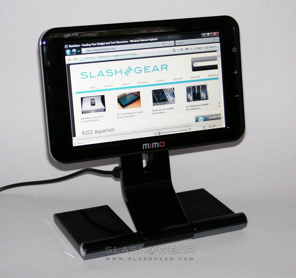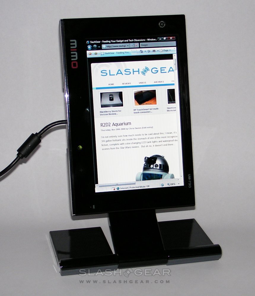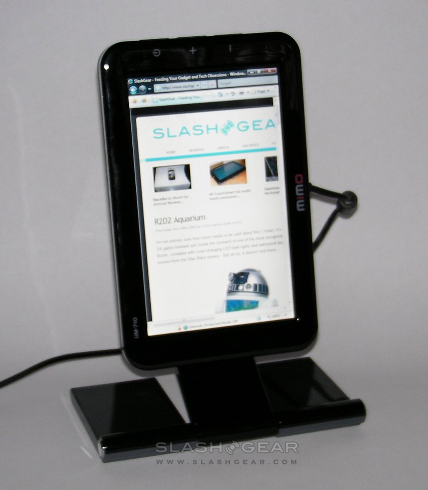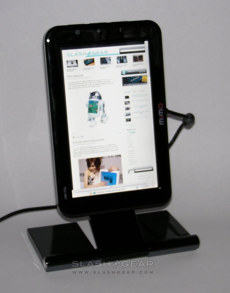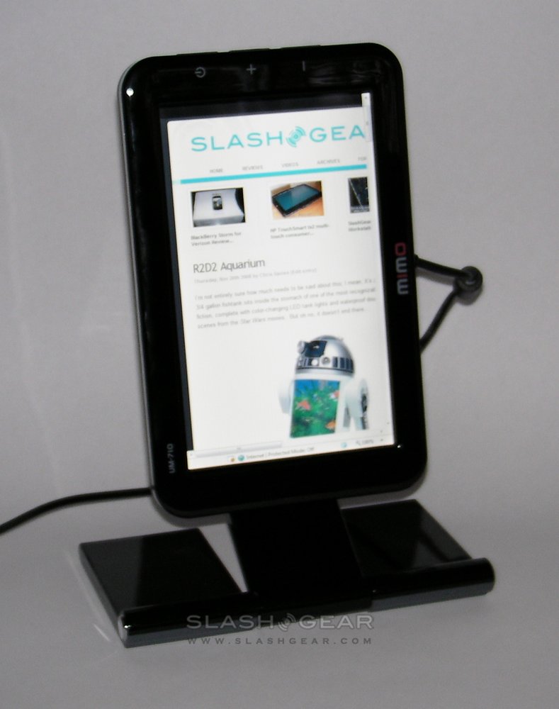 Our one significant complaint was going to be about the model line-up. In Korea, three versions of the MIMO displays are on offer: the same UM-710 and UM-730 that you see here, along with the UM-750 which includes a touchscreen and DMB Digital TV tuner. Since the tuner wouldn't work with non-Korean bands, the 750 was axed from the European and US line-up. So, our grumble was to be the absence of a touchscreen version.