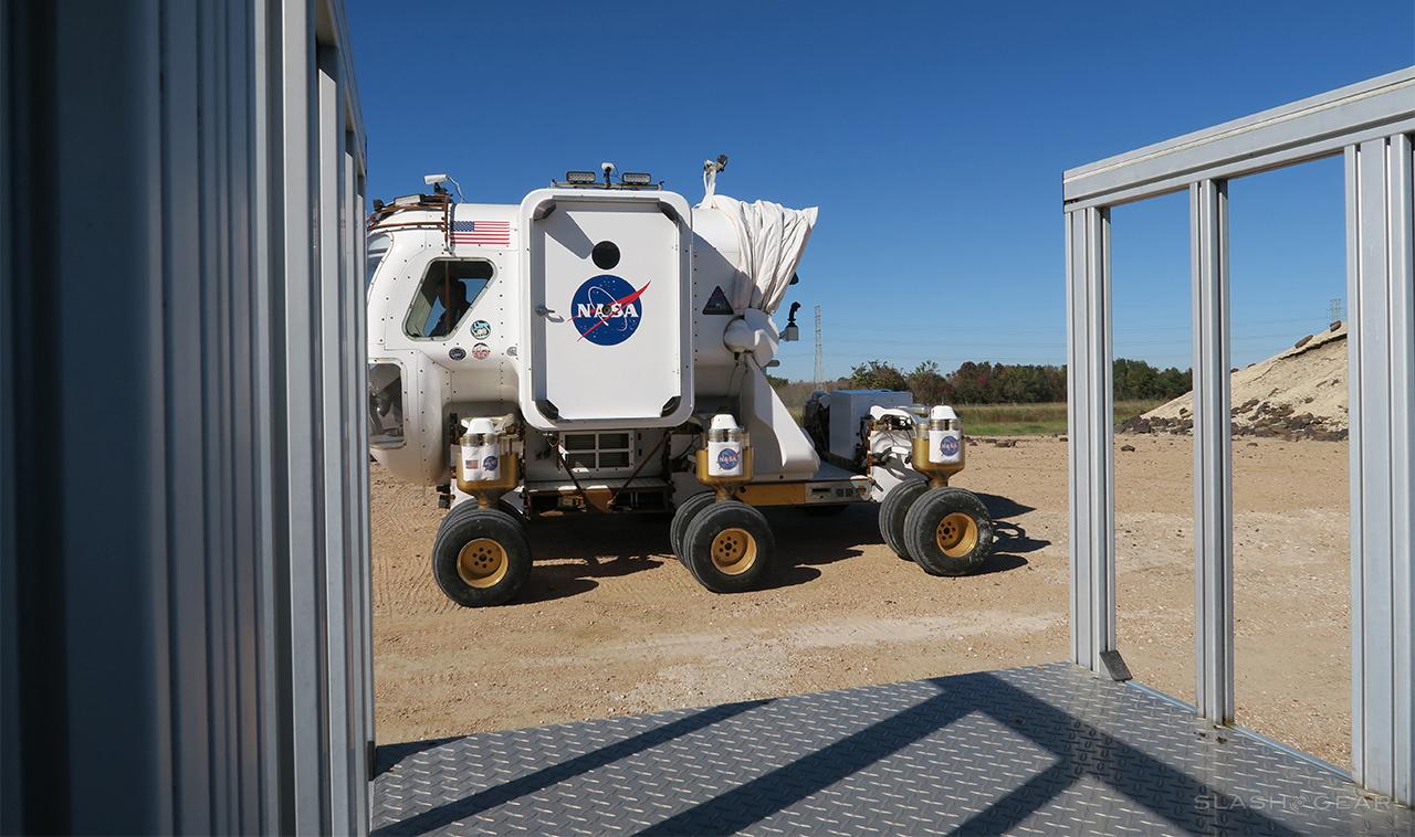 Earlier this month we were invited to the Johnson Space Center by NASA and Fox Home Entertainment, and there we were taken on a ride in the Mars rover. The rover isn't actually called "Mars rover" by its creators – its official name is "Space Exploration Vehicle" because of its intended purpose: any ol' planet will do. So will an asteroid. We're going to the moon, to Mars, and even (possibly) to an asteroid as it hurtles through space. As such, this is the vehicle astronauts will be riding in once they land. Much like The Martian.